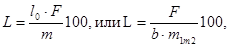 где l0 – длина полоски между зажимами, м; F – разрушающее усилие (среднее арифметическое пяти-десяти измерений), Н; m – средняя масса полоски, г; b – ширина полоски, м; m1 м2 – масса 1 м2 бумаги, г.
