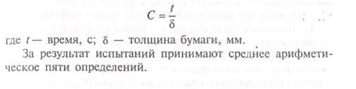 В настоящее время разработано и применяется более 50 способов определения степени проклейки бумаги. В Россий­ской Федерации стандартом установлены два метода: чернильно-штриховой и метод сухого индикатора. Сущность первого метода заключается в нанесении на бумагу рейсфе­дером штрихов увеличивающейся толщины и определении максимальной ширины штриха, не расплывающегося и не проходящего на другую сторону листа. Второй метод осно­ван на определении времени прохождения воды через тол­щу бумаги и степени увлажнения индикатора, помещенно­го на ее поверхность.