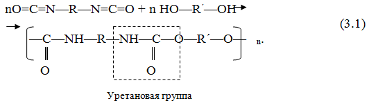 Полиуретаны получают в результате реакции диизоцианатов и дигидроксилсодержащих соединений (гликолей):