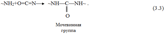 Образовавшиеся аминные группы с большой скоростью реагируют со свободными изоцианатными группами, содержащимися в смеси, с образованием мочевинных групп: