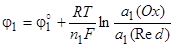 - активность катионов водорода в растворе; n – заряд протона или число электронов, участвующих в реакции; F – число Фарадея (F = eNa = 96485 Кл/моль). Для разности потенциалов находим