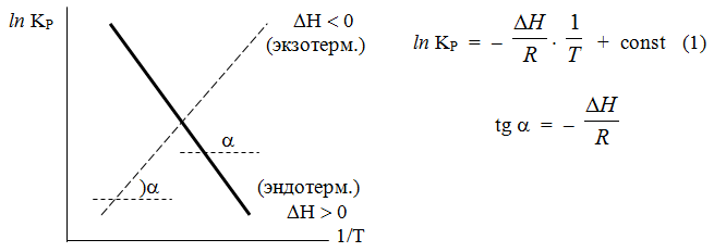 Эти уравнения позволяют предвидеть зависимость константы равновесия от Т : если DН > 0, то