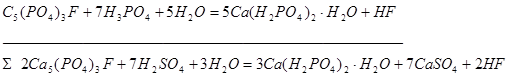 Оставшееся фосфатное сырье разлагается фосфорной кислотой с образованием дигидрофосфата кальция.
