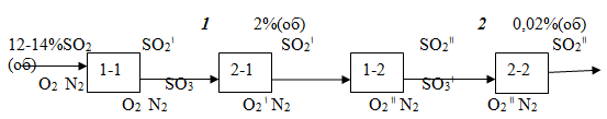 - Схема двухстадийного окисления и абсорбции.
