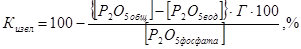 где Г-гипсовое число, выход сухого фосфогипса на единицу фосфата. Коэффициент извлечения Р2О5