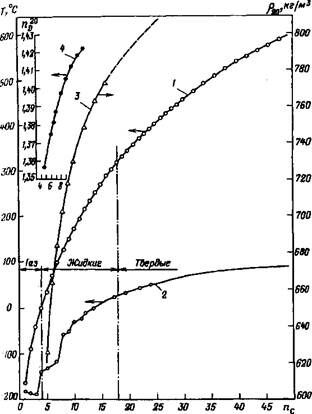 1 - температура кипения; 2 - температура плавления; 3 - плотность при 20 °С; 4 – показатель преломления