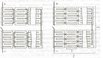 Рисунок 1.17 - Схема питания электролитных ванн электрическим током в блоках и сериях.