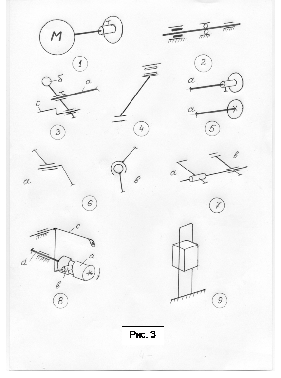 Структурная схема механизма – его условное изображение, объясняющее устройство и движение его. В отличие от кинематической схемы она выполняется без масштаба и без указания кинематических параметров механизма. Мы преимущественно будем пользоваться структурными схемами. В швейном машиностроении даже для плоских механизмов применяются пространственные структурные схемы, т.к. они полнее раскрывают сложное строение и конструкцию швейных машин, очень сложных по устройству.