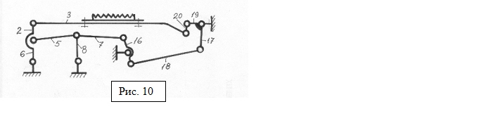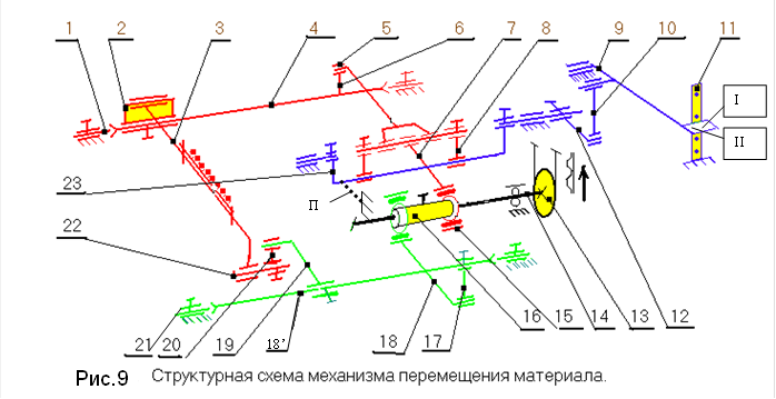 На рисунке 10 дана плоская схема механизма перемещения материала с сохранением обозначений рисунка 9.