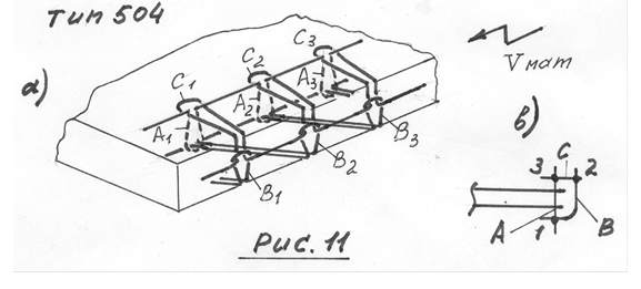 А,В, и С – петли соответственно иглы, левого петлителя и правого петлителя. Индексы букв – порядковые номера выполненных стежков.