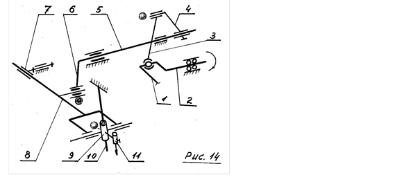 Здесь звено (9+11) пассивное, т.к. точка шатуна 8, лежащая на направляющей 10, и без ползуна 9 будет двигаться с достаточной точностью по прямой.