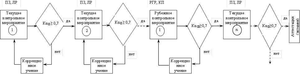4. Многоуровневый, распределенный, текущий контроль учения путем выполнения соответствующих контрольных мероприятий с коррекцией результатов для достижения запланированного уровня и качества обучения.