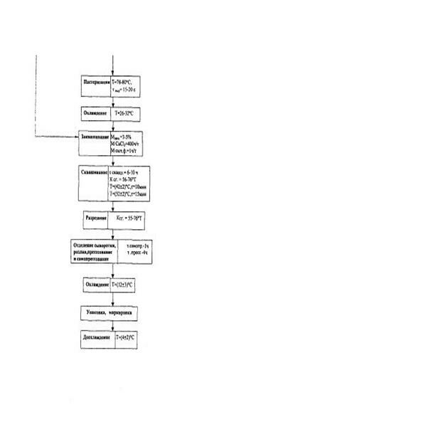 Технологический процесс производства творога с массовой долей жира (м.д.ж.) 2,0; 3,0; 3,8; 4,0; 5,0; 7,0; 9,0; 12,0; 15,0; 18,0; 19,0; 20,0; 23,0% и обезжиренного осуществляется в следующей последовательности: