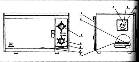 1-рабочая камера, 2- дверь, 3- панель управления, 4-реле времени,