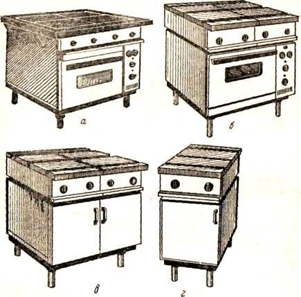 ПЭСМ-4 – не имеет жарочного шкафа; вместо него в корпус плиты вмонтирован шкаф для хранения инвентаря и посуды.