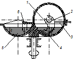 Куттер (рис. 1) состоит из чаши 5, режущего механизма, включающего приводной вал 2 и серповидные ножи 4, из гребенки 3 и крышки 1, закрывающую зону куттерования.