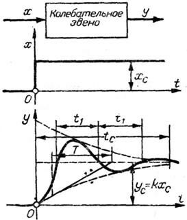 Графики переходного процесса такого звена показаны на рис. 32. Передаточная и частотная функции определяются по уравнениям: