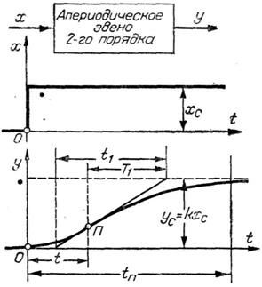 В том случае, если в уравнении будет иметь место неравенство , то звено превращается в апериодическое 2-го порядка с переходной функцией