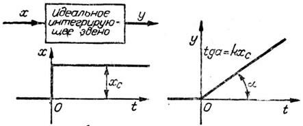 Из уравнения (58) следует, что если на вход интегрирующего звена подать ступенчатое возмущение, то выходная величина будет со временем беспрерывно увеличиваться.