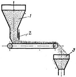 Различают звенья с чистым или транспортным запаздыванием, примером которого может служить ленточный питатель (рис. 33). Если входной координатой считать положение шибера на питающем бункере 1 (х), а выходной координатой — количество материала, поступающего в бункер (Q), то переходная характеристика этого звена может быть описана уравнением
