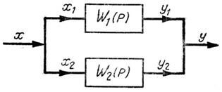 Передаточная функция параллельно соединенных звеньев равна сумме передаточных функций отдельных звеньев: