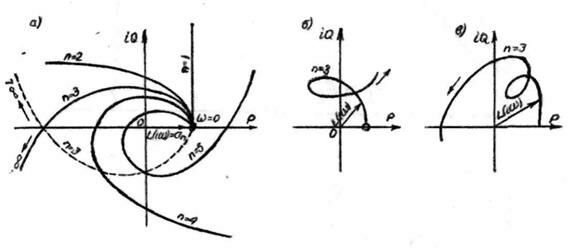 Примерные годографы Михайлова для устойчивых систем разного порядка показаны на рис. 42,а, а неустойчивых — на рис. 42, б и в.