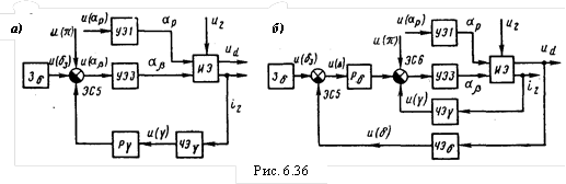 Как видно из рис. 6.36а, регулируемая величина – угол запаса непосредственно не измеряется и цепь обратной связи по отсутствует, поэтому такая САР является разомкнутой. В последнее время появились замкнутые системы регулирования выпрямителя по углу запаса с, так называемой, вольт-секундной величине запаса: