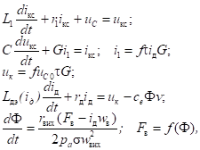 где ψ – потокосцепление; r – сопротивление обмоток двигателя; ик – приложенное к двигателю напряжение; е – ЭДС.