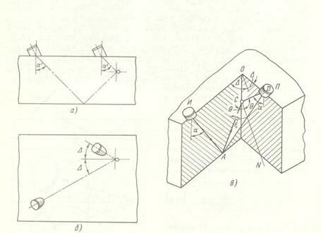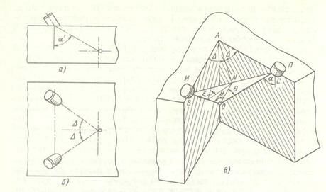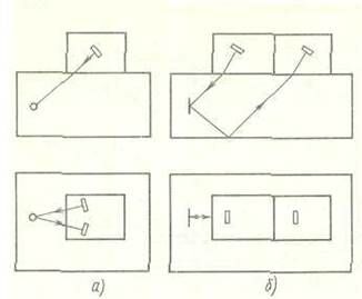 Рис.9.8 Наклонные РС-ПЭП а) с излучателем и приемником, расположенными рядом, б) с излучателем и приемником, расположенными один за другим