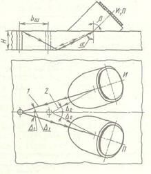 мм). Принципиальная особенность этих ПЭП — прозвучивание дефекта горизонтально поляризованной волной, распространяющейся параллельно стенке трубы. Такие условия распространения ультразвукового пучка выполняются, если расстояние по хорде между точками выхода излучателя И и приемника П