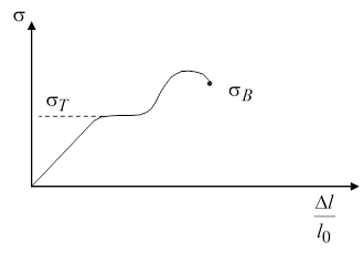 Предел текучести соответствует площадке текучести материала. В случае, если такая площадка отсутствует, вместо σт используется напряжение σ0,2, которое соответствует напряжению, при котором остаточные деформации конструкции (пластические деформации) составляют 0,2% от длины испытываемого образца.