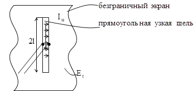 На основании принципа двойственности по аналогии с элементарной щелью поле, создаваемое симметричной щелью, можно найти, если известно поле, создаваемое симметричным электрическим вибратором, имеющим одинаковую форму и размеры со щелью.