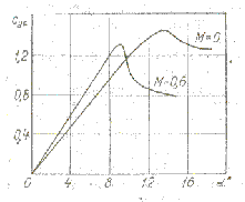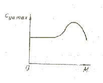 У тонких профилей со срывом в длинной зоне у передней кромки увеличение числа М вначале не приводит к изменению сya max (рис.9.27), так как не изменяется характер срыва. Затем из-за турбулизации пограничного слоя происходит смена типа срыва — на срыв в короткой зоне с быстрым присоединением, и коэффициент сya max увеличивается. С возникновением местных скачков уплотнения и волнового срыва коэффициент cya max снова уменьшается (см. рис. 9.27).