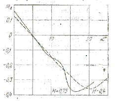 Однако наиболее сильное и неблагоприятное влияние оказывает срыв потока на моментные характеристики летательных аппаратов. В частности, в зависимости mz (a) появляется участок выполаживания (или даже так называемая “ложка”, то есть изменение знака производной mz a ) , после которого может наблюдаться восстановление наклона характеристики mz(a), то есть восстановление знака производной mza или даже его увеличение (рис. 9.18).