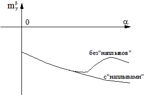 Во-первых, на величину mx b сильно влияет срыв потока с крыла, особенно концевой. Во-вторых, при увеличении угла атаки киль наклоняется назад по отношению к набегающему потоку, увеличивается его эффективная стреловидность (