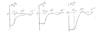 При полете на больших углах атаки происходит падение эффективности органов продольного и бокового управления самолетов — уменьшаются по абсолютной величине и даже могут поменять знак производные mx d э (mxd инт), myd н ,mzd в( mzj ст ) (рис. 9.22). Ухудшение характеристик элеронов, интерцепторов,