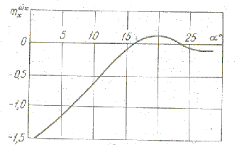 Видно, что при увеличении угла атаки эта производная уменьшается по абсолютной величине и даже может стать положительной (режим антидемпфирования).