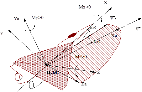 - аэродинамические силы и моменты считаются положительными, если их векторы или проекции их векторов совпадают с направлением соответствующих им осей координат.