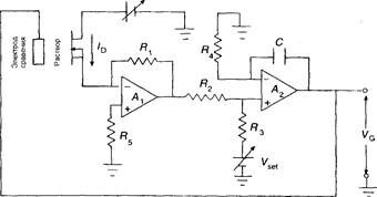 Рис. 2.8. Электрическая схема для измерения VG при постоянном токе стока: А1 и А2 - операционные усилители; R1 =1 кОм; R2 = R3 = 100 кОм;