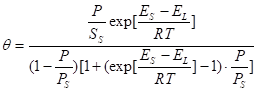 (Уравнение Бруннауэра - Эммета – Теллера или уравнение БЭТ) описывающее поведение сорбата при давлениях, вплоть до давления насыщающих паров сорбата
