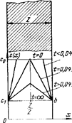 Для пластины, обезгаживаемой с одной стороны, надо иметь в виду, что по прошествии определенного периода времени процесс обезгаживания перейдет в процесс проникновения газов, описываемый уравнением первого закона Фика (6) или (8).