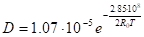 Коэффициент диффузии  зависит от температуры твердого тела и свойств системы «твердое тело - газ» следующим образом: