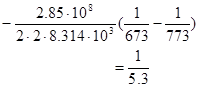 Пример 2. Найти, во сколько раз уменьшится скорость газовыделения азота при повышении температуры обезгаживания листовых деталей из малоуглеродистой мягкой стали от 673 до 773 К при одинаковой длительности процесса.