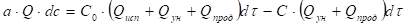 где dG- - прирост количества соли или другого лимитирующего загрязнителя, или их суммы в течение бесконечно малого времени работы оборотной системы; Со - концентрация соли в воде, добавляемой в систему; С - текущая (мгновенная) в каждый данный момент времени средняя концентрация соли в системе; Qисп - потери воды в единицу времени в оборотной системе на испарение (при этом концентрация соли в системе возрастает); Qун - потери в результате уноса и разбрызгивания; Qпрод - потери воды от продувки (сброса части воды из системы);