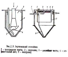 Вертикальные отстойники применяют при очистке оборотных сточных вод расходом до 20,000