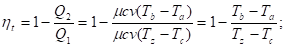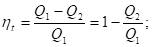Термодинамический К.П.Д. цикла представляет собой отношение количества теплоты, преобразованного в механическую работу, к количеству теплоты, подведенному к рабочему телу.