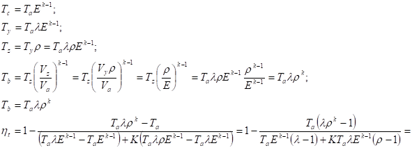 Выразим все температуры через начальную Ta, используя известные из термодинамики соотношения между температурами в характерных точках цикла и его параметрами.