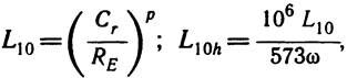 В отдельных случаях пригодность намеченного подшипника качения оценивают сопоставлением базовой и требуемой долговечности. В этом случае в п. 6 определяют базовую долго вечность подшипника L10 в млн. оборотов или L10h в часах: