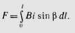 Для определения полной силы, действующей на проводник длиной l, необходимо просуммировать силы,  действующие на все его  элементы: