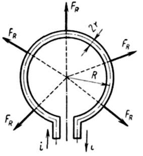 При протекании тока возникает сила, стремящаяся увеличить радиус витка, поскольку с ростом R растет индуктивность L, а следовательно, увеличивается и электромагнитная энергия систе­мы: